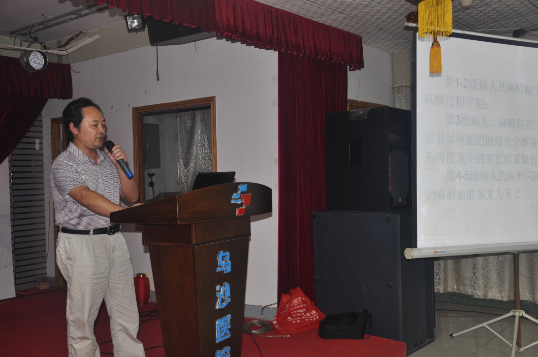 为了杜绝医疗安全隐患,提高手术病人医疗质量。8月15日晚,乌沙医院在四楼多功能会议室举办麻醉应用风险评估业务知识培训。由我院麻醉科主任向兴华主讲,来自各科室的医务人员100多人参加了培训。