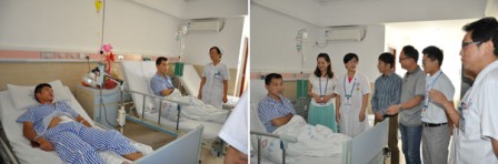 10月18日上午,长安公安分局领导;10月21日上午,东莞市见义勇为基金会理事长张继雄及市公安局领导等纷纷前来我院看望俩位辅警,并为刘士学、庞业庆分别送上见义勇为慰问金3万元和1万元,同时感谢我院医护人员对俩位辅警的精心救治,尤其对我院医技水平给予高度赞赏。外科杨发国主任向领导们表示,警察是的忠诚卫士,正因为有了他们尽职尽责的工作,才能尽享平安的生活。所以,能为他们服务,也是我们的荣誉和责任。
