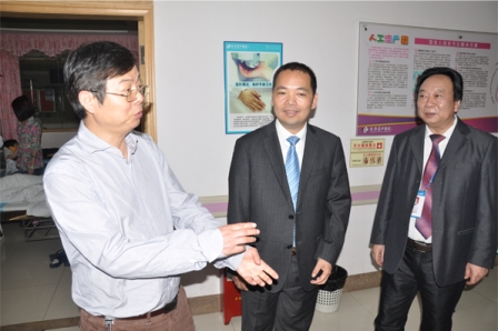 2014年4月10日,广东省卫生厅原副厅长、广东优生优育会长冯鎏祥及省医院妇科医生陈建国教授一行,来长安乌沙医院考察评审。陪同冯会长一行的院领导有:总经理刘瑞元、院长邱生友、院长助理张立高、院办主任赵甜甜、运营部总监汪军利、护理部主任宋海娥、工会主席詹祺等。
