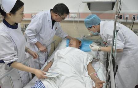 据张周义主任介绍,脑出血传统治疗方法有单纯的药物治疗和开颅血肿手术清除,均因病程长、手术创伤大、并发症重、后遗症多、病情难以恢复、治疗费用高等缺点,而仅适合用于很小部分的病人,以小的创伤,达到清除血肿,减轻颅内压,有利于神经功能恢复,一直是所有临床神经外科同仁的追求。乌沙医院采用的微创治疗方法,该技术具有适应范围广,术前准备时间短,手术操作时间短,对病人创伤小,以及治疗费用低等优点。仅需要CT定位后,在病人头部插入一直径3-5毫米的管子即可完成血肿溶解、引流,大大减小了病人的痛苦。