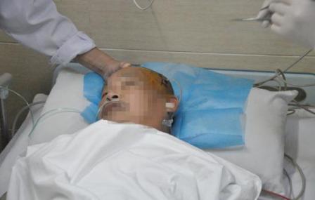 脑外科张周义主任查看了患者及其颅脑CT结果后,指示即刻行术前准备,并与患者家属进行了详细病情告知,建议予以手术治疗,手术方式采用微创、损伤小的钻孔引流术。患者家属在医师详细讲解病情后,同意行手术治疗。之后,在手术室。张周义主任在其他医务人员配合下,为患者紧急实施微创手术。张周义主任在患者患侧额颞部置入1根引流管,引流脑内血肿。经过1小时紧张细致的操作,手术顺利完成。因手术开展及时,患者血压得以控制,成功挽回了患者的生命。