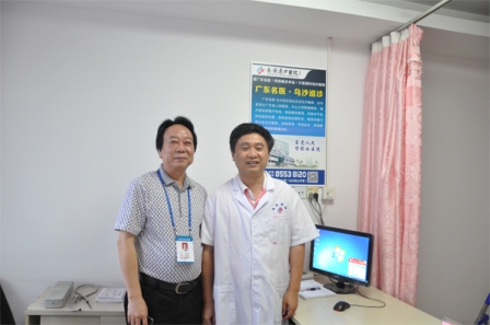 俞教授(右一)与邱院长在省级医生诊室合影留念合影