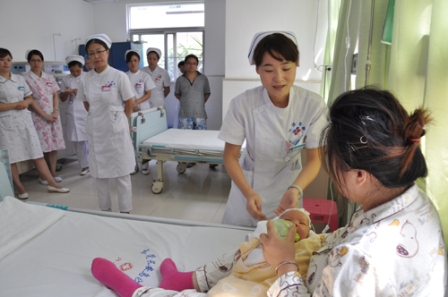 由于大多数的宝宝在出生几天之内就会出现黄疸,而新手妈咪们看着宝宝日渐发黄心里很是着急。为了解决妈咪们的焦虑,那么新生儿黄疸又该如何处理及预防护理呢?为此,9月20日上午,护理部在住院部一楼内儿科病房组织了一次新生儿黄疸的护理查房。护理部主任宋海娥、各科护士长、组长及内儿科护士参加了此次护理知识查房。