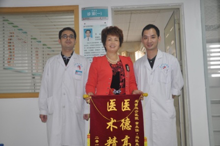 11月,覃女士再次回到长安看到儿孙,并趁这次回长安的机会,于13日来到医院疼痛科送上“医德高尚,医术精湛”锦旗一面,以表达对章主任、顾医生、马医生的看病之恩。