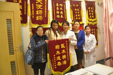 2月5日,福建三明市24岁的彭女士由母亲陪着来到乌沙医院,亲自把一面写着“医术精湛,枯木逢春”的锦旗送到“天使妈妈”——不孕不育科章晓英主任手中。想到这段时间以来章主任无微不至的诊治和关怀,彭女士心里涌起一阵阵温暖,不禁生发感激之情。她真切感受到乌沙医院医生的精湛医技,以及“诚信为本、患者至上”的服务宗旨。