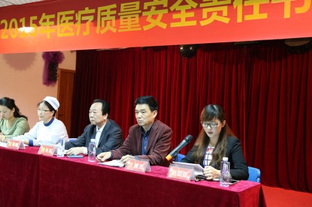 会上,医务科王遵吉主任对我院2014年医疗质量与安全工作进行了汇报。王主任分析了我院医疗纠纷的原因及在医疗工作如何防范医疗隐患,保障病人安全等问题进行了阐述。同时,王主任对2015年全院医疗质量与安全工作进行了部署,王主任特别强调了要加强年轻医师综合素质教育、加强医德医风教育、加强“三基”培训及考试、加强新老医生的传帮带、加强医患沟通、加强各项医疗制度的落实等,把提高医疗质量及保障病人安全放在位,确保病人安全。