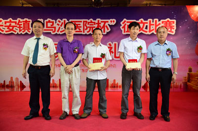为讴歌劳动,赞美健康,值五一国际劳动节来临之际,乌沙医院联合长安作家、长安台商会、广东优生优育等单位联合举办了“劳动光荣,健康相伴”系列活动。此次征文大赛颁奖典礼,是该系列活动的收官之作。征文活动于4月1日启动以来,得到了长安各阶层广大文友的大力主持,收到近200篇参赛作品。虽然,征文要求限在长安工作、生活的人参赛,可是仍然收到了来自长安外的一些作者投稿。经过四位作家对作品的评选,在充分体现公平、公正原则的基础上,评出一等奖2名,二等奖4名,三等奖6名,奖10名,入围奖10名,共计32人获奖。此次“乌沙医院杯”征文比赛创下了长安历届征文比赛的两个纪录。一是,奖金数高;二是,获奖人数多。