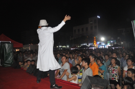 晚上7点整,文艺演出正式开始。来自东莞专业演出团体的演员们先后表演了《欢天喜地》、《大地飞歌》、《好运来》、《爵士舞》、《火苗》、《炫民族风》、《眉飞色舞》、《知心爱人》、《小苹果》、《你到底爱谁+特别爱给特别你+游戏人间+水手》联唱、小品《乡巴佬看病》、合唱《相亲相爱一家人》等节目,用激情和热情给大家带来了无尽欢乐。