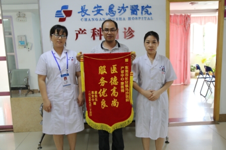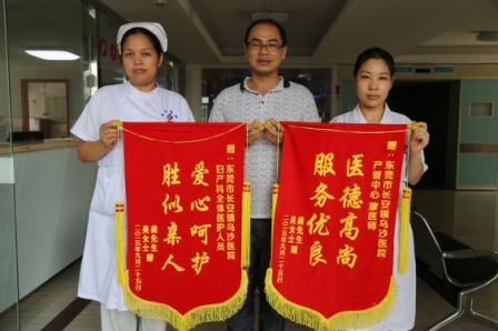 9月25日下午,特意从东莞虎门赶来的龚先生,把两面绣有"医德高尚,服务优良"、"爱心呵护,胜似亲人"字样的锦旗送到乌沙医院,表达了对产管和妇产科医护人员的浓浓赞美之情。龚先生的爱人吴女士,10天前在乌沙医院平安健康地诞下了小宝宝。