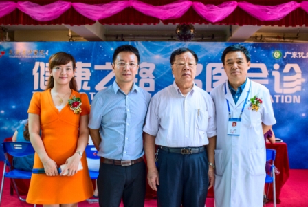 王遵吉(右一)与广东省卫生厅原副厅长、广东优生优育会长冯鎏祥(右二)等合影