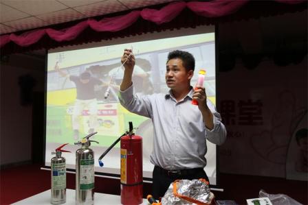 讲座中,罗教官为参训人员指出了学习知识、增强安全的重要性和必要性。并结合实际案例,详细讲解了法规、火灾危险性及预防措施、初期火灾的扑救、发生火灾时人员疏散、火场逃生自救、如何报火警、器材如何使用等常识。同时结合一些触目惊心的火灾现场视频进行了详细讲解,让大家更加深切地领教了火灾事故的危险和可怕。培训中,罗教官还为医护人员了几种火灾防护用具,并详细介绍了这些用具的使用方法。