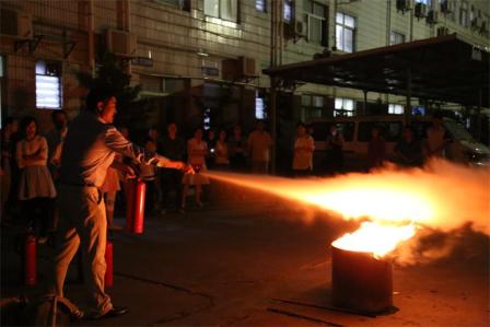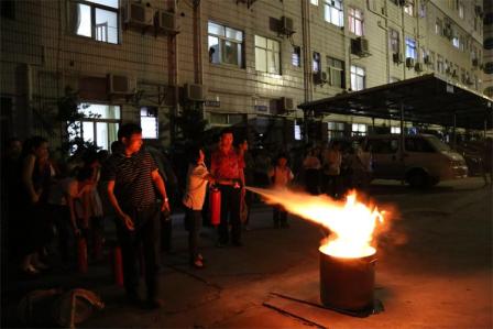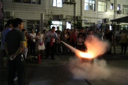 在培训课程结束时,在场的医护人员以热烈的掌声感谢罗教官带来的精彩讲解。为了让大家加深对理论知识的理解掌握,并学以致用,培训结束后,大家一起来到食堂外空地参加演习。罗教官演示完现场灭火后,大家当仁不让拿起灭火器进行现场灭火演习。