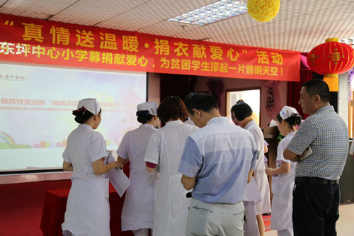 此次募捐是在医院领导刘瑞元书记的倡导下,医院党支部牵头组织开展的。活动前,医院支部通过医院QQ群、微信群、文件等形式,向全院员工发出了《“真情送温暖•捐衣献爱心”倡议书》,号召全体员工为活动积极募捐。