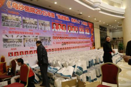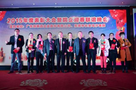 羊舞丰收岁,猴吟锦绣春!2015年对乌沙医院来说,又是一个丰收年,为了答谢全院员工一年来的辛勤付出与拼搏进取,感谢社会各界对我院的关心与支持。1月17日晚,乌沙医院在长安华禧酒店隆重举办2015年度表彰大会暨院企联谊春节晚会。旨在共同分享丰收的喜悦,一起憧憬明天的辉煌,让"乌沙梦"再次腾飞!长安公安分局领导、长安交警大队领导、长安作协领导、长安摄影领导、长安台商会领导、长安港商会领导、乌沙社区领导、乌沙派出所领导、合作企业代表、创新高集团董事、集团属下医院领导、兄弟单位领导及乌沙医院职工等近1000人参加。晚会共分为四个部分。部分是年度表彰盛典,第二部分是文艺汇演,第三部分幸运大抽奖,分设特等奖及一、二、三、四等奖,计221个奖项,第四部分团年晚宴。晚会由东莞电视台、长安电视台主持人担纲。