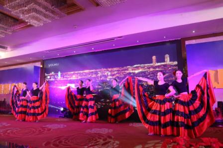 伴着激动人心的鼓声,动感十足的开场舞《丰收时节》拉开了晚会帷幕。创新高集团董事长苏瑞高、乌沙医院总经理刘瑞元、合作企业领导分别在会上发表了精彩的致辞。苏董在致辞中热情赞扬了乌沙医院在总经理刘瑞元带领下,上下团结进取、众志成城共创卓越成就,同时勉励大家在新的一年里,求真务实,开拓创新,让"乌沙梦"腾飞。
