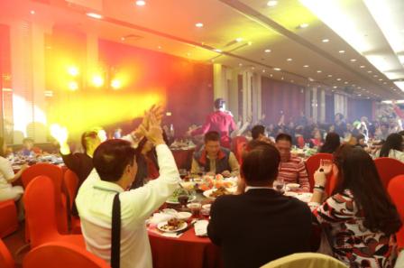 由客服部带来的舞蹈《礼仪之邦》拉开了晚会文艺表演的帷幕,美女们轻歌曼舞,尽显文明礼仪风彩;来自广州星海音乐学院的"民歌小天后"美丽的钟敏老师,激情演唱了《在希望的田野上》、《我爱你,塞北的雪》;院工会的《美猴王表演》,果然功夫了得,名不虚传,让人捧腹,令人陶醉;妇产科表演的舞蹈《再见,卡门》,充满异域风情;刘瑞元总经理献技的书法表演及古筝演奏,有种古色古香、才子佳人的感觉;院工会表演的舞蹈《敦煌琵琶》,在悠扬的琵琶曲中,为台下观众带来一场视觉盛宴;外科表演的舞蹈《咏春》,展现了咏春真功夫,乌沙好医术;院工会表演的劲歌金曲《饿狼传说》、《一路摇摆》,用歌声演绎了杏林高手闪耀盛典,歌唱乌沙再创新高;院工会表演的舞蹈《年年有余》告诉我们,幸福就是"年年有余";后,大合唱《相亲相爱》,震撼全场,阵阵掌声经久不息。