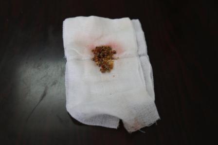 对此,做儿子的不得不让老母亲住院治疗。在完成相关术前检查后,手术由乌沙医院泌尿外科雷大方主任主持。手术分别于2月15日,行左输尿管结石碎石取石;2月19日,行右侧经皮肾碎石取石术。术中,从李女士体内取出数十颗大小不一的结石。