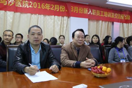 现代医院的竞争,说到底是人才的竞争。随着医院的不断发展,长安乌沙医院越来越重视人才的培养。3月25日晚,长安乌沙院在行政办公区六楼会议室举行2-3月份新员工入职培训暨交流座谈会,总裁刘瑞元、业务院长邱生友、经营院长林奇红等院领导到会。此次参加培训新员工共计43人,院办主任陈文军主持会议。