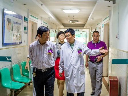领导、医生、学者共同按下启动球