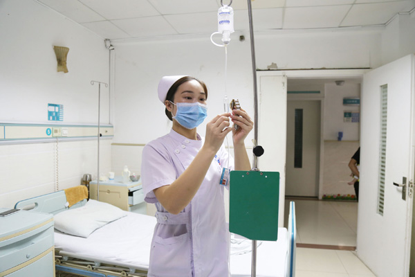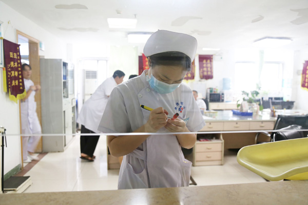 为防止出错,王鹏程在输液前要和同事进行双人核对。