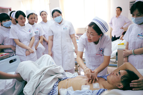宋主任亲身为护理人员进行示范指导
