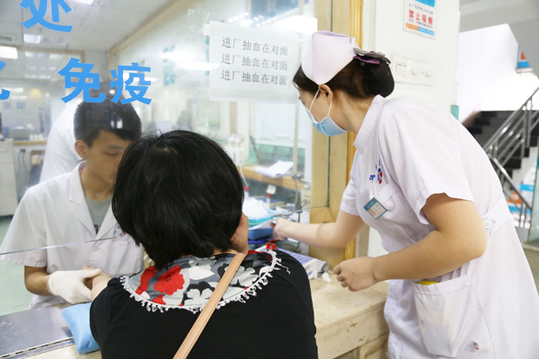 王鹏程在为患者测血糖。