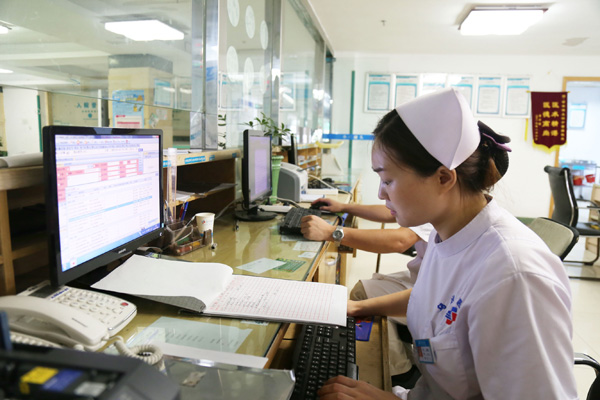 下午,王鹏程整理病患档案,所有的病人都有自己的档案,每一步护理操作、用药,都要及时录入档案中。