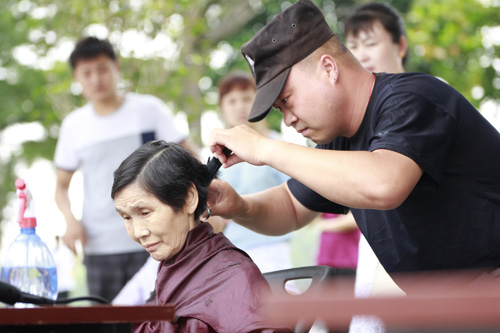 动作娴熟,神情专注,一招一式很有发型师的风范,我的职业是理发师?NO!我是长安莲溪文体公司的一名员工,这是我在“献爱心,送温暖”活动中义务理发的情形。要问我为什么会有这么专业的技术?因为我曾经拜师学习过,虽然后来改变了职业方向,但看家功底还在。看看这位大姐的发型,是不是被我打理得很靓?只要人人都献出一点爱,世界将变成美好的人间!如果你认为我的行为值得肯定,请为我投上一票!谢谢你的爱心!