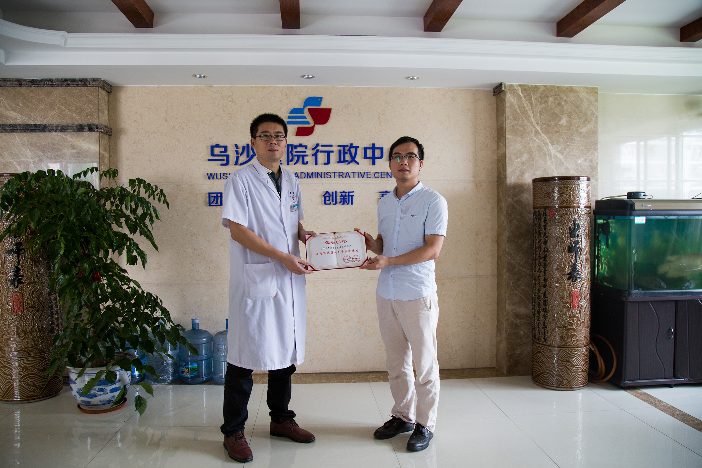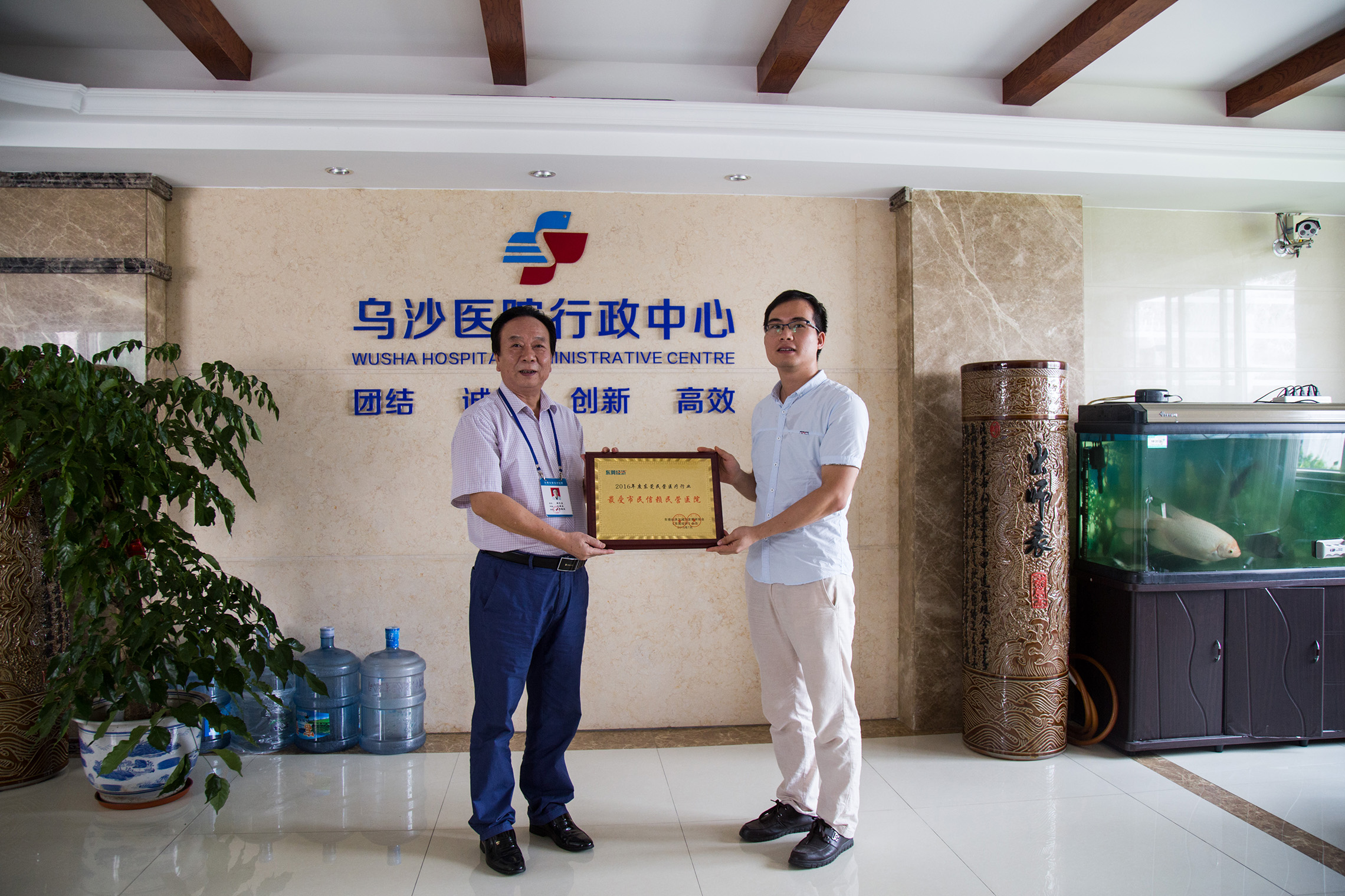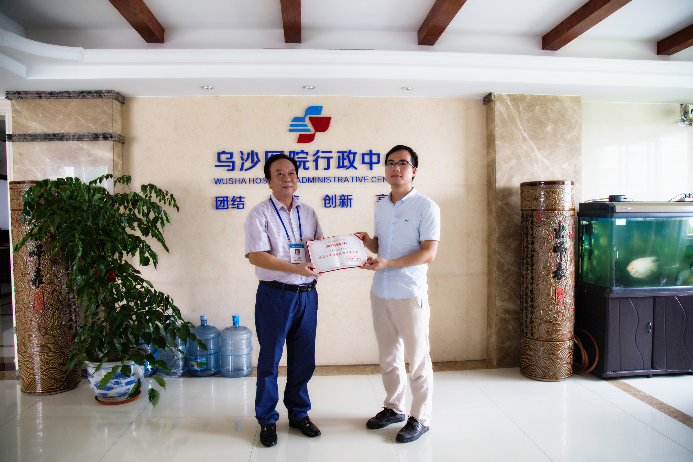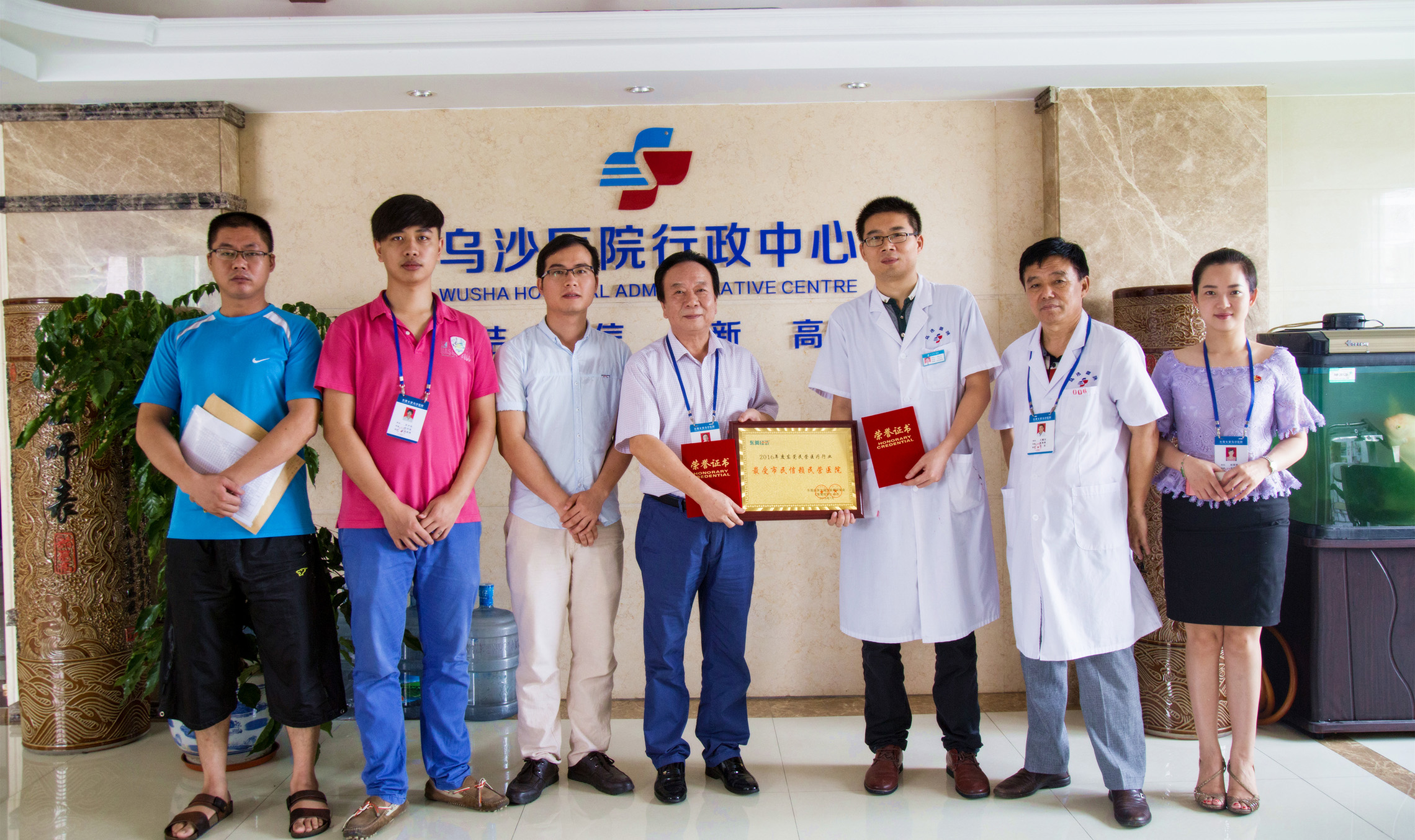 在立秋过后的8月11日,乌沙医院业务院长邱生友、医务科主任王遵吉、院办主任赵甜甜、信息科主任林伟华、院长助理苏少伟、手外科主任胡永生以及举办方代表赖经理等来乌沙医院颁奖,并在六楼行政办公区小会议室参加了颁奖座谈会。