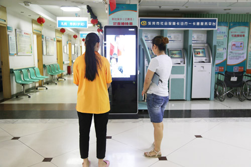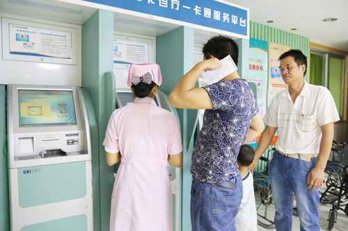 在导医帮助下进行医保一卡通操作