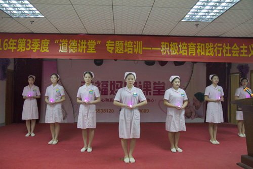 邱院长一登上讲台,大家便报以热烈的掌声。邱院长从日常生活中不道德的小事讲起,引申出专题培训的主要内容:一、什么是道德;二、为什么要弘扬道德;三、怎样弘扬道德。