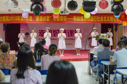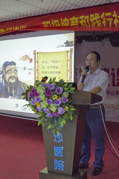 为更好地弘扬中国传统文化,提升医院职工的国学文化素养,加强医院职工的道德素质教育。充分引导全院职工省心修身、崇德向善,弘扬美德,发挥道德模范及身边好人的示范引领作用。8月30日晚,乌沙医院在四楼多功能会议室举行第3季度《道德讲堂》专题培训。全院近300名职工参加培训,业务院长邱生友担任主讲嘉宾,院办主任赵甜甜主持培训会。