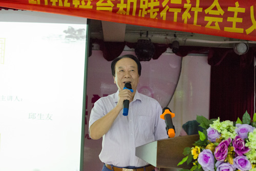 邱院长从古人对道德的解释引入,强调国学经典的重要性;从当今道德现状,分析为什么要弘扬道德;从奥运赛的感人一幕,选手停止比赛帮助抽筋对手,引出怎样弘扬道德,就是要做到四维(礼、义、廉、耻)、五常(仁、义、礼、智、信)、四字(忠、孝、节、义)、八德(忠孝、仁爱、信义、和平)。再到中共十八大报告明确提出"三个倡导",即"倡导富强、民主、文明、和谐、倡导自由、平等、公正、法治,倡导爱国、敬业、诚信、友善,积极培育社会主义核心价值观"等。
