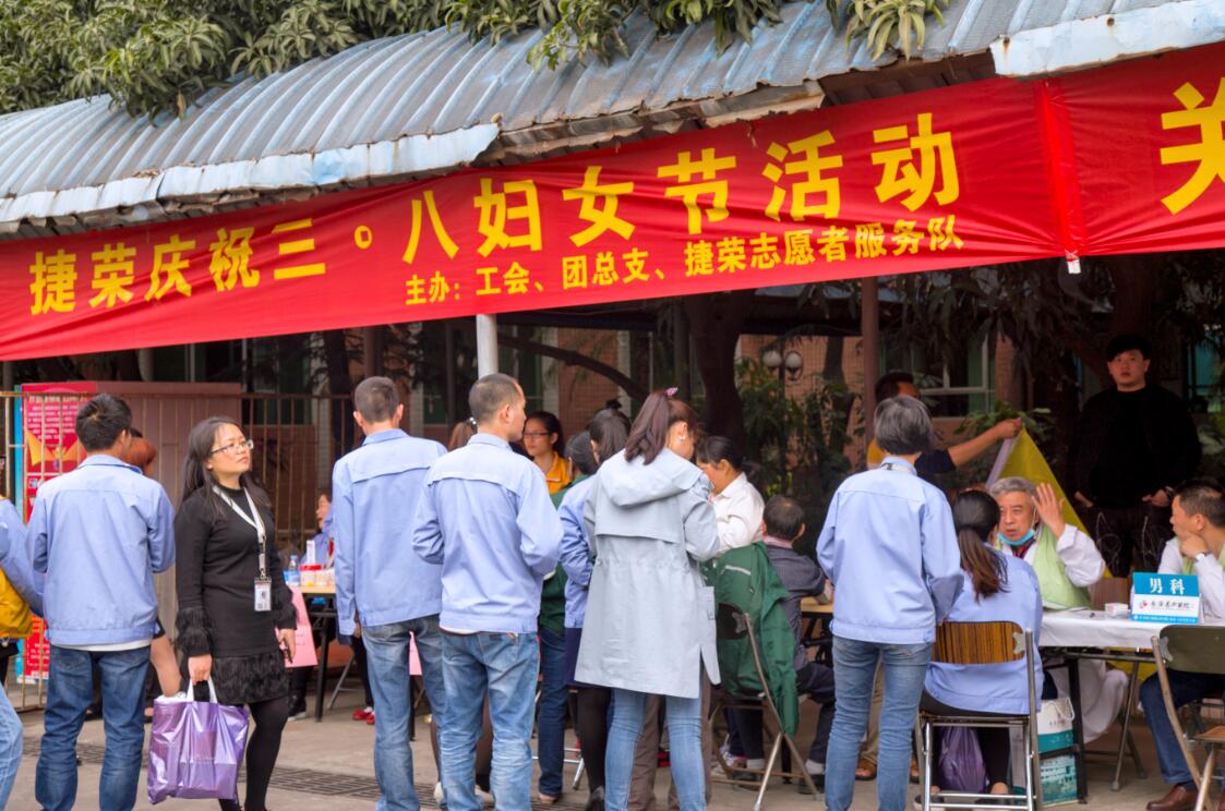 为庆祝三八妇女节,3月4日,上市公司长安名企——捷荣模具有限公司特举办“关爱女性共建和谐美好家园”活动。活动内容有:游戏、法律咨询、跳绳比赛等,活动特邀长安镇乌沙医院志愿服务队为员工进行健康志愿义诊服务。