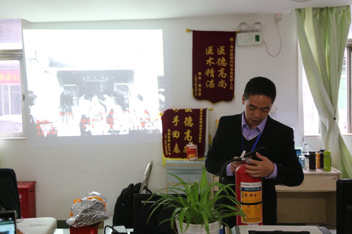 医院属于高火灾风险场所,人员相对集中,且病人较多,一旦发生火灾就会威胁人们的生命安全。为了提高全院职工的防火安全意识,有效避免防火安全事故的发生,增强我院职工自防、自救、逃生的防范能力,树立"防火安全、人人有责"的意识,3月13日8点30分,我院特别邀请了东莞社安防火技术中心教官来院,分别在住院部一楼、四楼和五楼护士站进行防火安全知识培训。我院医护人员近100人参加了这次防火安全知识培训。会前,保安队长杨林海向大家讲解了接受防火安全培训的意义及重要性,并勉励大家利用这次培训机会好好学习防火安全知识。