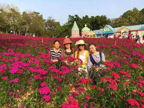 红黄紫绿,艳斗群芳,此洲披锦,独掩风华,且喜东莞藏阆苑,名称梦幻;
