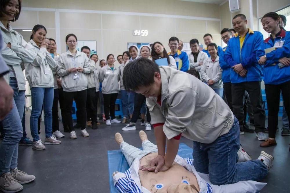 迅诚电子厂全体职工通过认真聆听、仔细观察、亲自实践,对人体心肺复苏常识有了进一步的了解,同时初步掌握了人体心肺复苏急救技能。